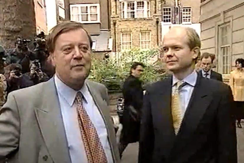 After eighteen years in government, in which just two people had held the role of prime minister but many ambitious MPs had gained senior ministerial experience, the Tory party was brimming with aspiring leaders. But the field of candidates had some limitations placed upon it. One was the severity of the election defeat; at least four possible candidates lost their seats. Michael Portillo, who would have begun the contest among the front-runners, and three less likely candidates, Malcolm Rifkind, Ian Lang and Norman Lamont, all suffered rejection from their voters. Another likely candidate was Michael Heseltine, who had played a role in the last three Tory leadership contests; he lingered behind a stalking horse in 1989, challenged Margaret Thatcher directly in 1990, and was preparing to stand if there was a second ballot in the 1995 contest. Heseltine had remained in the Commons and his ambition had not been quenched, but two days after polling day in 1997 he was admitted to hospital with angina. Having already suffered a heart attack in 1993, and being much older than any other leadership candidate at 64, he announced he would not be standing. (Heseltine, of course, is still alive at 91. Whether that suggests his health was good enough to stand, or that not standing helped preserve him, is of course unknowable!).