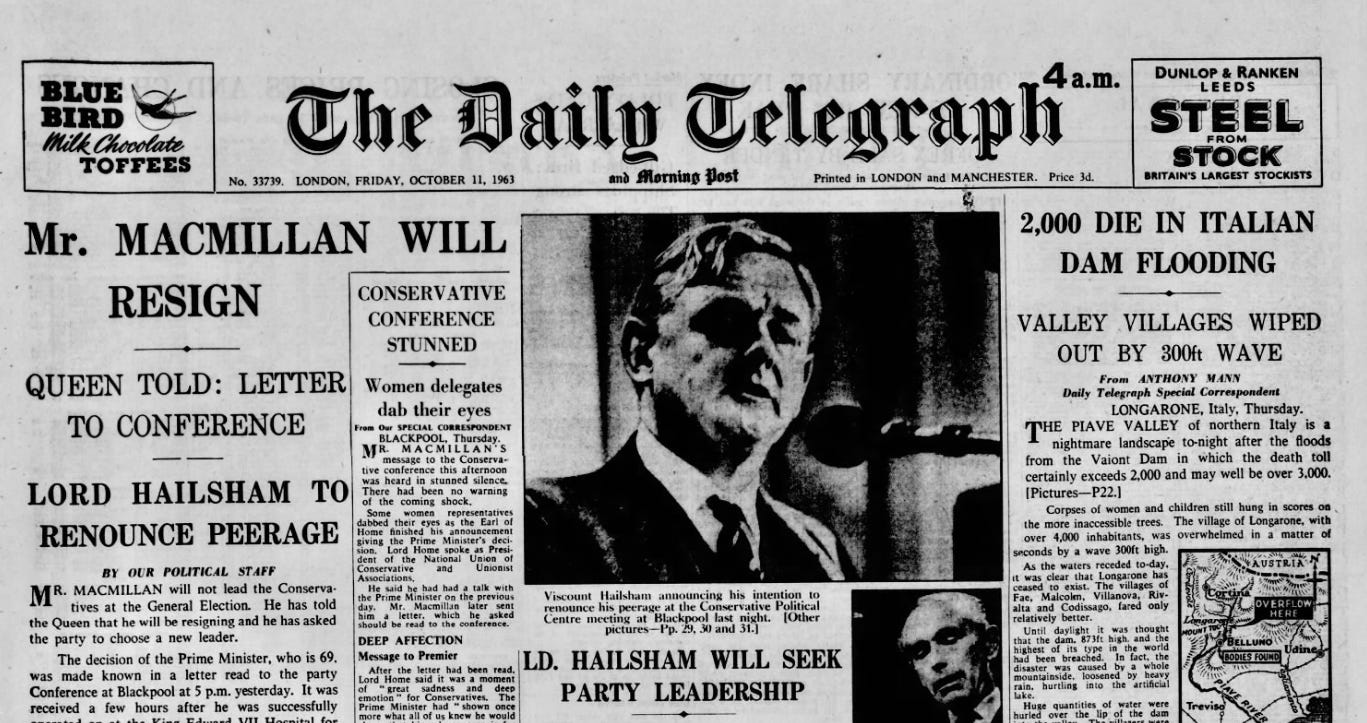 How The Daily Telegraph reported Macmillan’s news. 11th October 1963.
