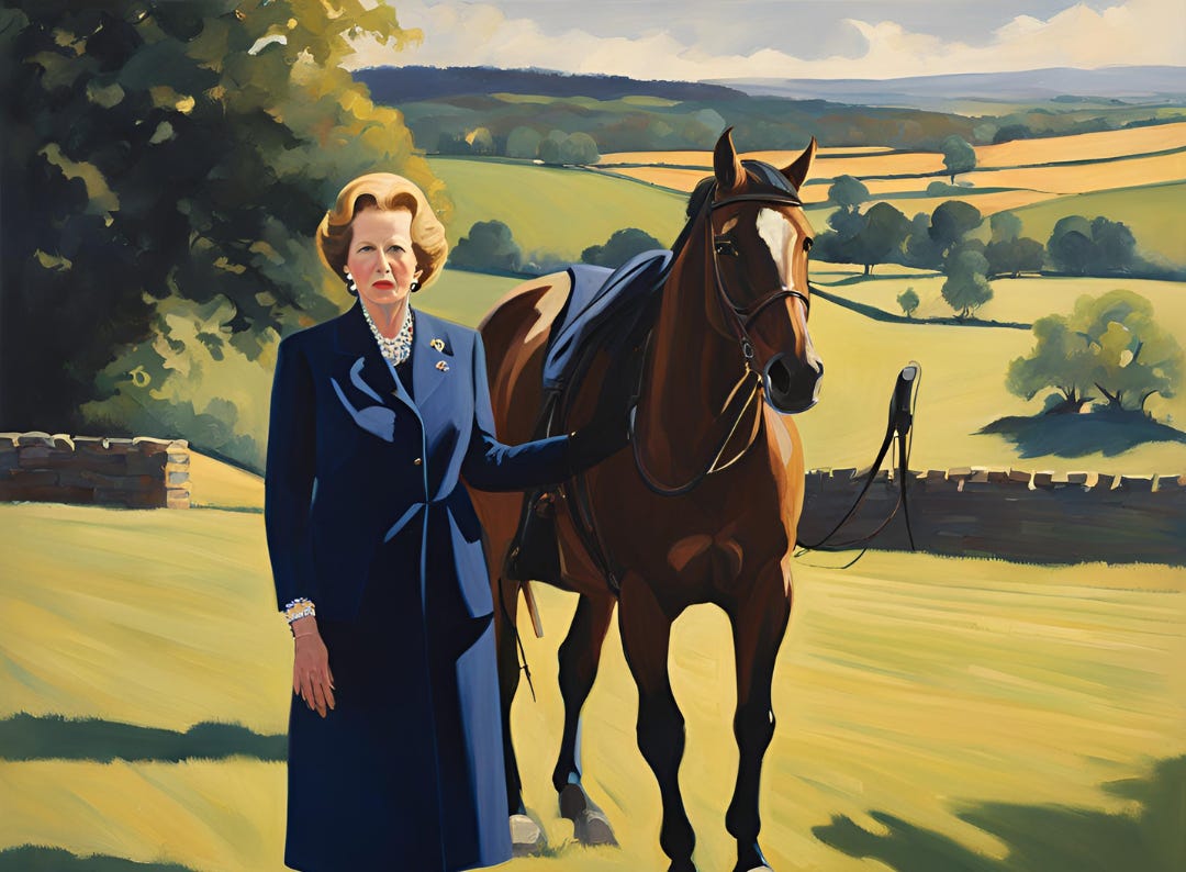 To my knowledge, Margaret Thatcher never had a photograph with Sir Anthony Meyer. So I asked AI to produce an image of her with a ‘stalking horse.’ This is the least ridiculous image it generated.